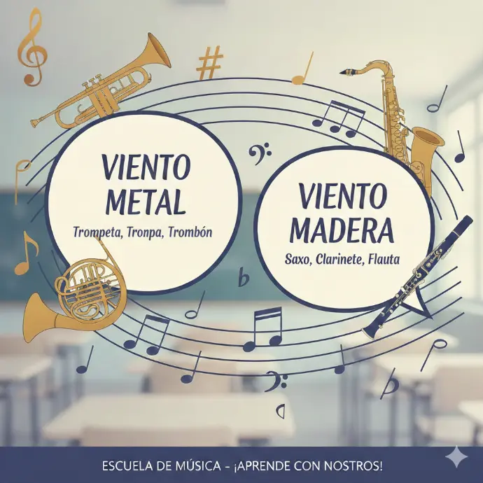 Instrumentos viento madera, viento metal, percusión y cuerda