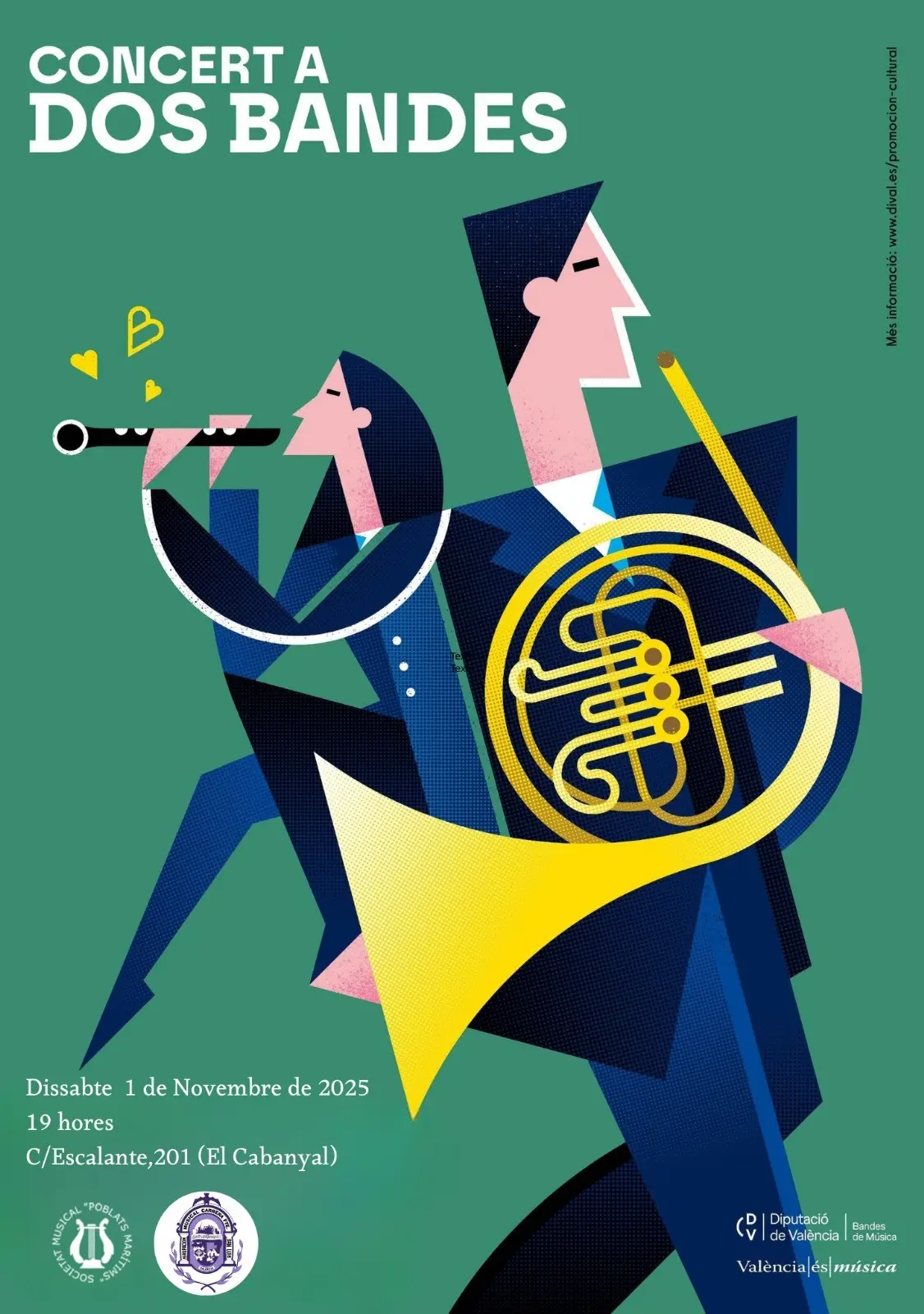 El pasado sábado, 1 de noviembre de 2025, a las 19:00 horas, la Sociedad Musical Poblados Marítimos vivió una noche inolvidable en el corazón del barrio del Cabañal. La C/ Escalante, 201 en Valencia, fue testigo de una vibrante jornada musical: el "Concert a Dos Bandes".